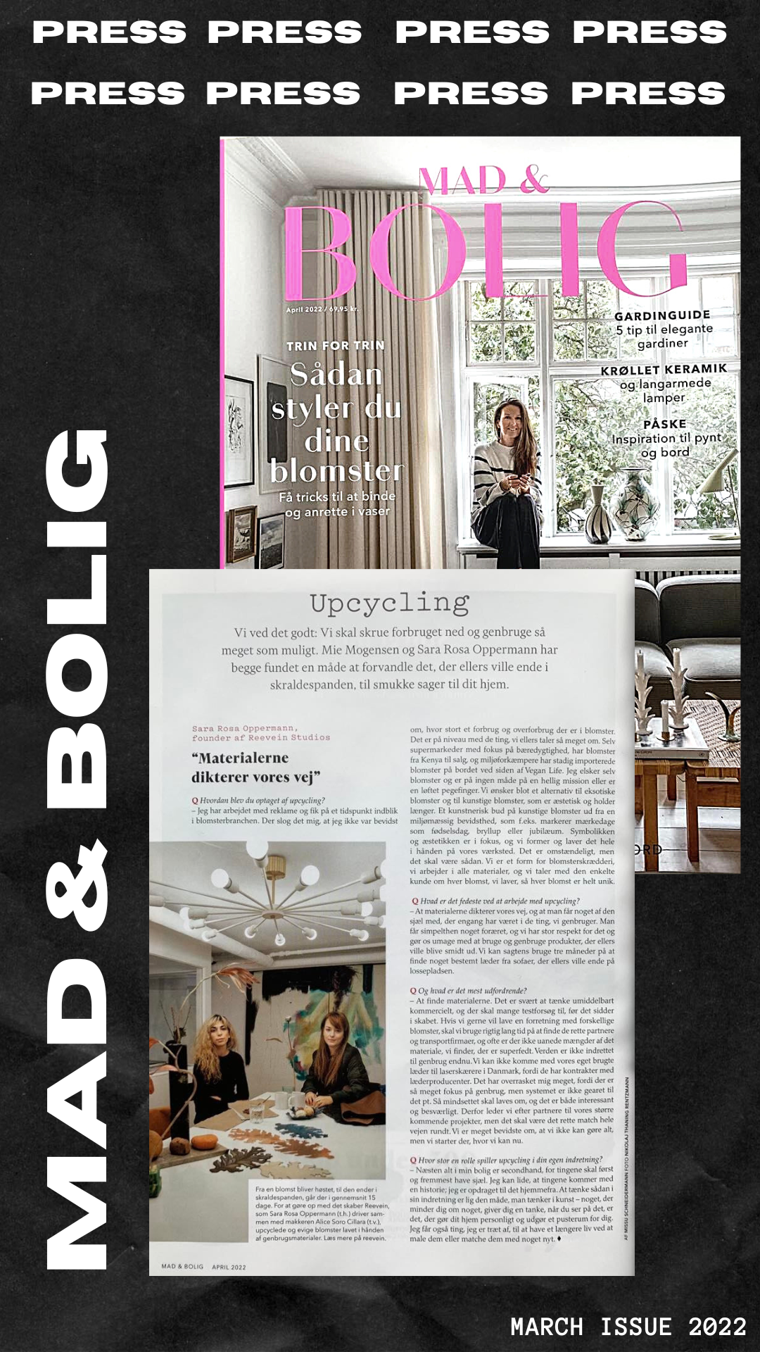Det månedlige nordiske interiør- og livsstilsmagasin 'Mad & Bolig' interviewede stifterne af Reevein Studios om deres arbejdsproces og designunivers
