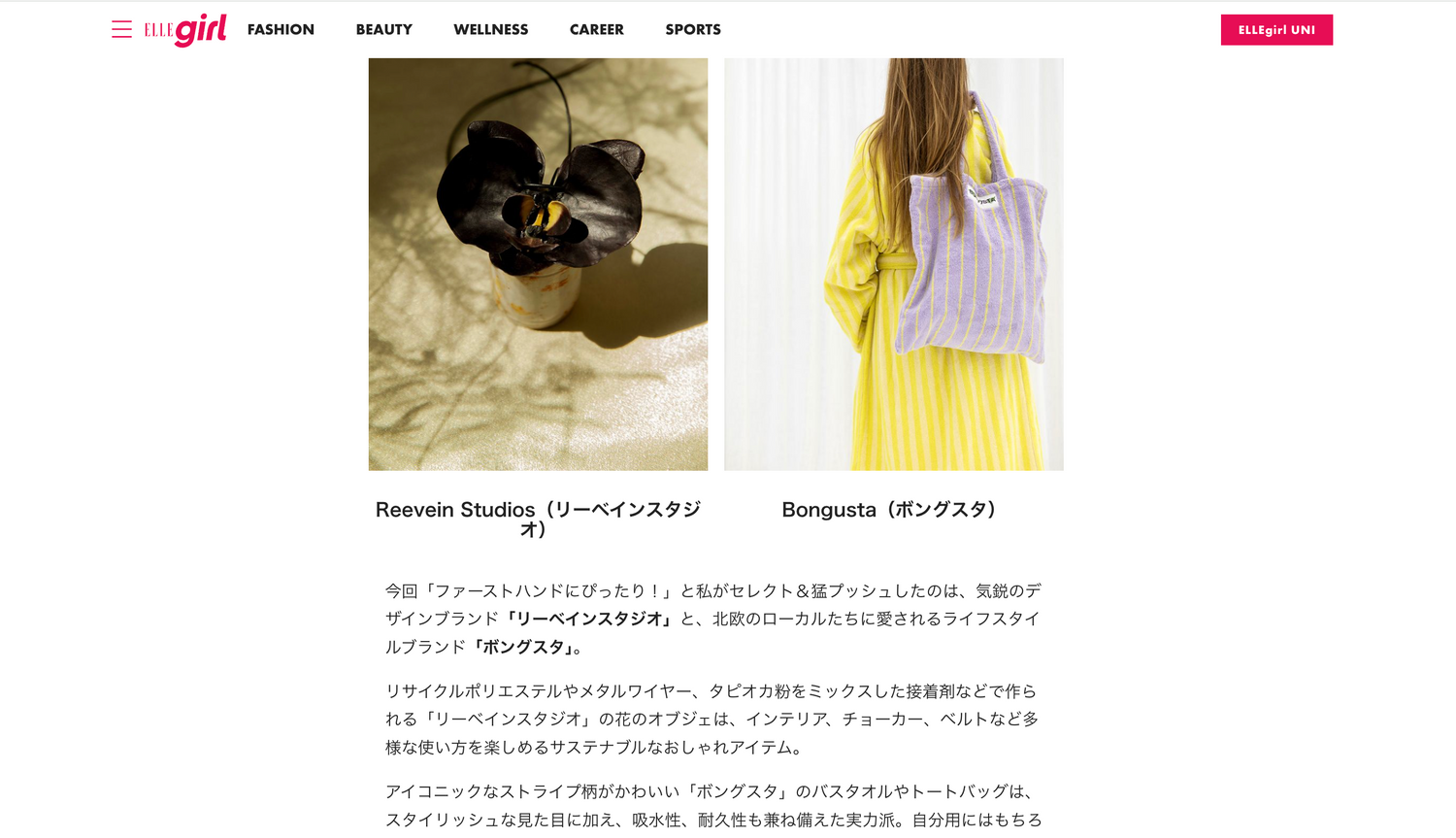 Reevein Studios is highlighted as one of 5 Danish Fashion & Lifestyle brands by ELLE Girl Japan in March 2024 (Other brands: GANNI, Baserange, Bongusta & The Garment)