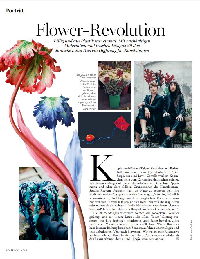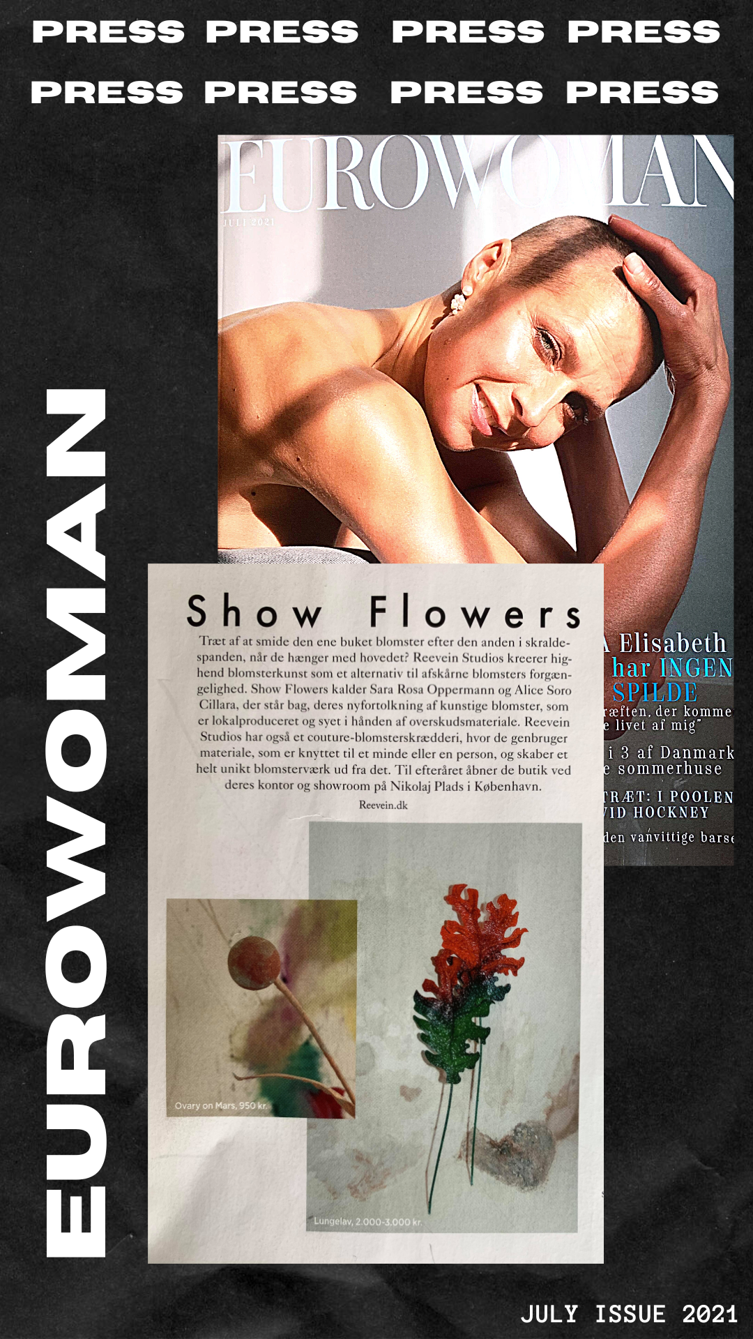 Det danske mode- og livsstilsmagasin Eurowoman skrev om Reevein Studios og den allerførste limited edition kollektion 'from the Woods and the Sea' og kaldte den nye kategori af blomster for 'Show Flowers'