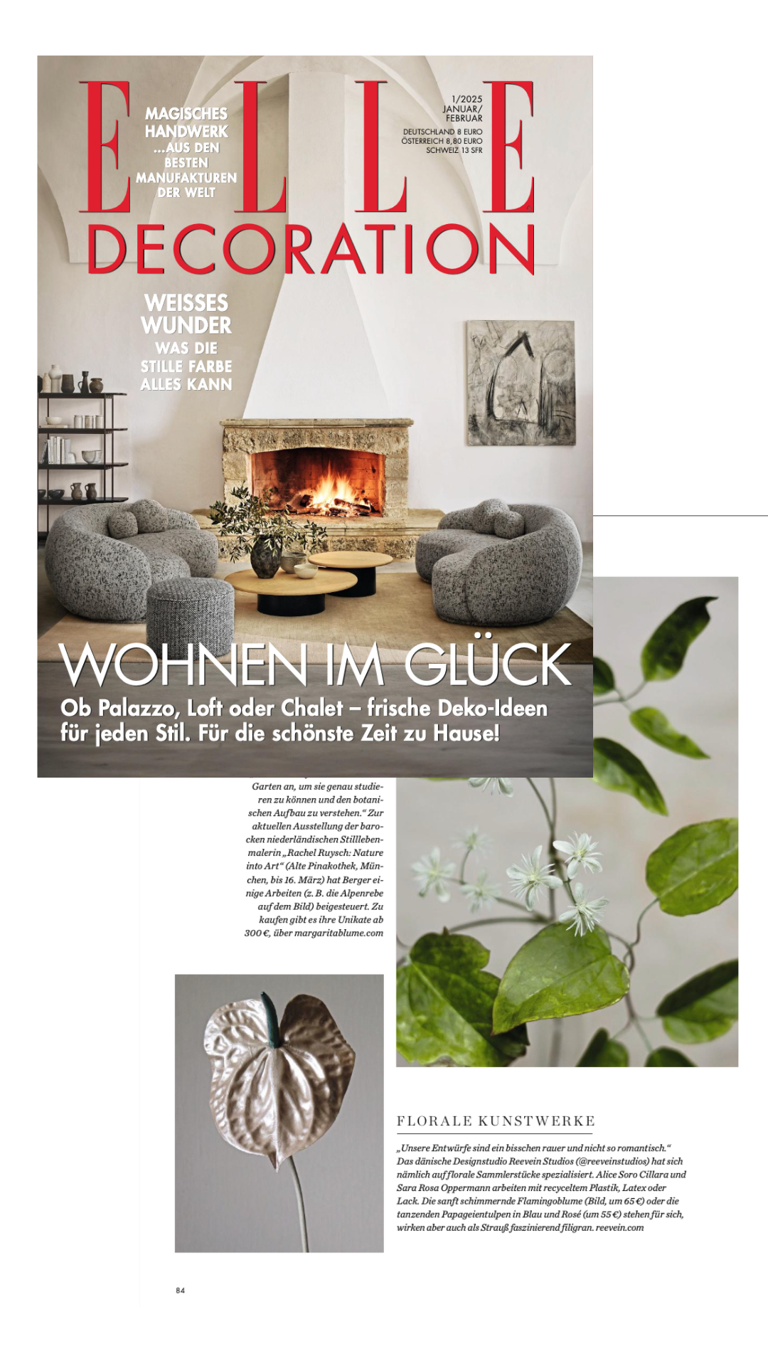 Reevein Studios is highlighted ad Floral Artworks in the German edition of ELLE Decoration in January 2025.