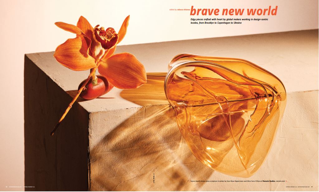 Vi er begejstrede for at kunne fortælle, at Reevein Studios er på forsiden af den nyeste udgave af det amerikanske Interior Design Magazine – Spring Market Tabloid Issue, som udkom i juni.